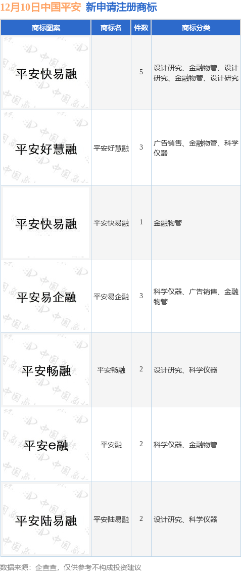 证券之星音尘开云kaiyun中国官方网站,阐发企查查数据涌现,近日中国祥瑞保障(集团)股份有限公司新提交“祥瑞畅融”、“祥瑞好慧融”等18件商标注册恳求。商标恳求笃定如下: